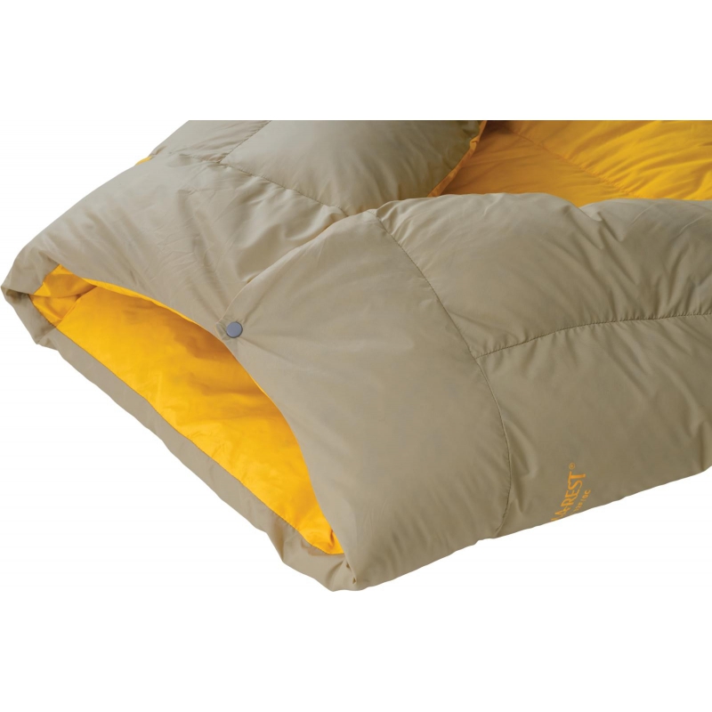 Łącząc lekki komfort, funkcjonalność i odpowiednią ilość ciepła, kołdra Corus jest idealna na cieplejsze, trzysezonowe przygody w terenie lub jako część systemu warstwowego w chłodniejszych warunkach. Wykonana z pakownego, hydrofobowego puchu i skonstruowana z wykorzystaniem komór kasetowych, zapewnia doskonałą regulację temperatury. Corus oferuje zaskakująco wyzwalające uczucie nieograniczonego ruchu przez całą noc, podobnie jak Twoja kołdra w domu. Specjalnie zaprojektowany, dopasowany do stóp footbox może być naciągnięty na materac, aby wyeliminować przeciągi, lub na stopy, zapewniając dodatkowe ciepło. Zapięcie na zatrzask przy szyi utrzymuje kołdrę na miejscu w chłodniejsze noce.